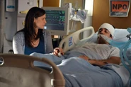 Angelo is stable in the hospital at first, bleeding and breathing normally. However, he begins to bleed excessively while only Bay is present, unaware of what is happening. Alarms go off when it becomes an emergency, and doctors rush in and begin to treat him. Later, Daphne lip reads a doctor in a different room, through glass doors, that Angelo's brain has completely stopped functioning, and that the only reason he is alive was because the machines were beating his heart and breathing for him. After they have time to process, they find out in his Final Will that he would have wanted to have the life support removed. They soon unplug the life support, and Angelo dies. Among learning that Angelo’s argument with Regina had resulted in his aneurism Daphne blames Regina for her father’s death.